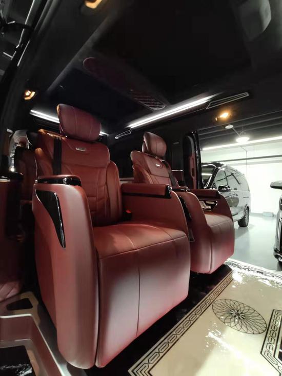 奔驰V260的内饰舒适耐用,大气美观,满足了一些乘车挑剔的乘客,作为豪华的代步乘坐工具,是相当有自己独特风格的一款车型。奔驰V260中排的原车座椅,换成了蒙娜丽莎版的豪华商务航空座椅。外观特点是头枕可上下移动到座椅最高点下方,两侧的扶手内收,看着更薄,靠背更宽厚;功能上同样配置了电动调节按摩,可前后移动,放倒躺下休息等,十分舒适。两侧按钮轻松控制操作简单方便,不需要看屏幕操控,最关键是座椅最下方没有铁架突出,美观正版。
