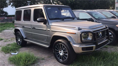 全新奔驰500/G550粗犷的外观,标志性的三肋镀铬格栅,大大的奔驰车标非常醒目;硬朗笔直的车身线条完全是硬派越野的风格,车头圆形前大灯设计很复古。平直的线条贯穿全身,后尾部线条也是有棱有角,后置式的备胎彰显出十足的越野味道。