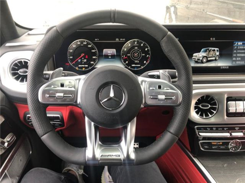 19款奔驰G6档次、质感和科技配置都明显提升全新奔驰G级的内饰相比老款有了明显的提升,采用了奔驰最新的双屏幕式设计,全液晶仪表盘和中控台屏幕都达到12.3英寸。同时内饰质感和工艺都有了很大的进步。中控台多处均采用碳纤维材料覆盖,带彩色TFT显示屏的AMG仪表盘、AMG主菜单和单独的挡位显示器以及采用白色照明的AMG门槛。