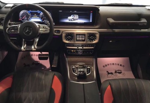 2019奔驰AMG G63配置:9速AMG变速箱,黑色AMG独家黑红双拼内饰干椒红碳纤维饰件红色安全带可调阻尼底盘主动车道保持主动刹车辅助AMG红色卡钳 雷达测距柏林之声3D音响电动天窗风挡玻璃加热超细纤维内饰(鹿皮顶)64色氛围灯360环影AMG暗夜包增强座椅舒适包(多轮廓座椅,通风按摩),AMG高性能Nappa真皮方向盘AMG驾驶包时速240公里更加运动和灵活的驾驶体验有色指示灯、头灯和尾灯22“AMG轮毂(哑光黑与红色AMG外部运动条纹)AMG高级内饰黑钻石缝线与红色拼接前座与按摩、加热、通风前座AMG性能方向盘和仪表盘黑色Nappa皮革方向盘与红色拼接,地垫黑色与AMG标记和红色拼接