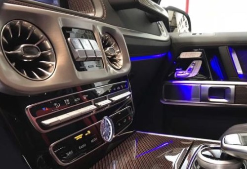 2019奔驰AMG G63较之于现款车型,它的内饰发生了巨大的变化,融入了不少现款奔驰S级的设计元素,从而变得更加豪华,而家族式的连屏设计则凸显了车内的科技感。当然了,经典的“三把锁”按键自然不会缺失,并且设置在中控台最为显眼的位置。