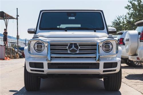全新奔驰G (配置|询价)550、G500粗犷的外观,标志性的三肋镀铬格栅,大大的奔驰车标非常醒目;硬朗笔直的车身线条完全是硬派越野的风格,车头圆形前大灯设计很复古。平直的线条贯穿全身,后尾部线条也是有棱有角,后置式的备胎彰显出十足的越野味道。