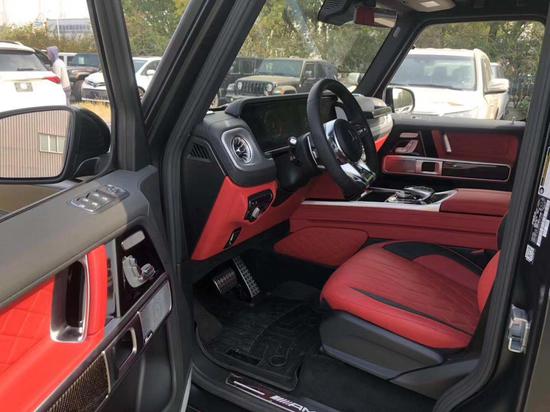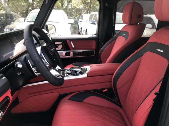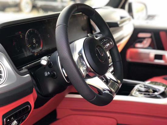 2019款奔驰G63车内采用深色调与桃木装饰,黑色真皮运动座椅非常舒适,方向盘以高档真皮包裹装饰,触感极其细腻。配有桃木装饰的操控台,稳重大气,同时提高了整体的质感。各种功能按钮应有尽有,丝毫不次于豪华轿车的功能。