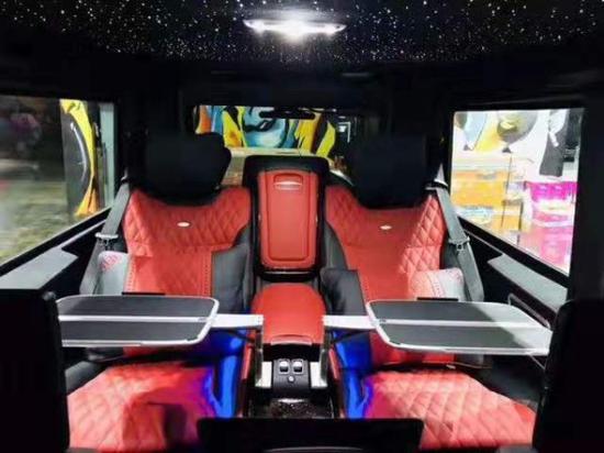 奔驰G550加长5.98米贯穿腰线的防擦条增强了整车侧面的力量感,对于侧面门板的保护作用也不言而喻。奔驰G550加长5.98米宽敞开阔的车内空间就已经令人倍感自由奔放,特有的居高临下的座椅位置确保您时刻保持极佳的全方位视野。18款奔驰G550有强度极高的非承载式车身布局,底盘有好几道加强梁举行加固,先后总体桥式吊挂体系粗壮非常,奔驰G级绝对是最强壮的民用车之一。