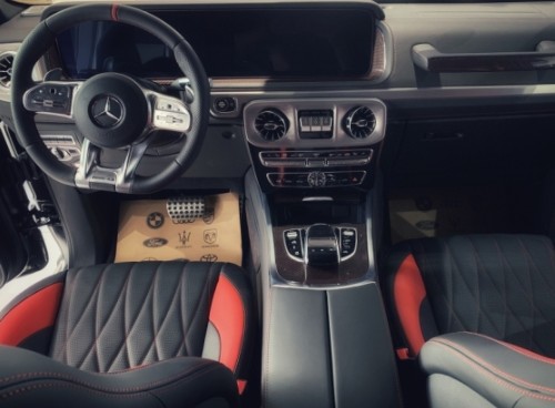 2019款全新G63内饰方面,新G63延续了S级的整体设计,除配色差异外,新车还换装了全新造型的平底式AMG运动方向盘,其两侧配以打孔皮质包裹,下部镀铬装饰的造型也与S级明显不同,看上去十分战斗。此外,全液晶仪表盘+中控大屏的双12.3英寸屏幕设计在新车上也没有缺席,营造出了浓郁的科技感。