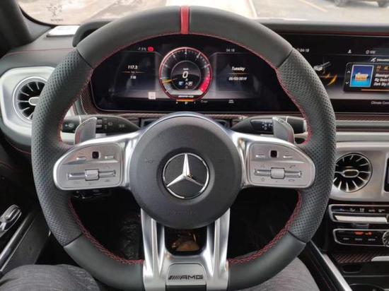 梅赛德斯。奔驰2019款全新G63内饰方面,新G63保留了新G500的整体设计,除配色差异外,新车还换装了全新造型的平底式AMG运动方向盘,其两侧配以打孔皮质包裹,下部镀铬装饰的造型也与新G 500明显不同,看上去十分战斗。此外,全液晶仪表盘+中控大屏的双12.3英寸屏幕设计在新车上也没有缺席,营造出了浓郁的科技感。奔驰新款G最低价格,G500报价,G63价格多少钱。