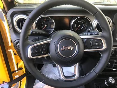 2019款吉普牧马人内饰采用双色设计,采用三幅式多功能方向盘设计,配备双圆形机械仪表盘,中控台配备内嵌式触摸屏设计,下方保留了大量实体按键。入门版配备7英寸信息娱乐系统显示屏,高配版8.4英寸内嵌式触摸屏,集成地图导航功能。