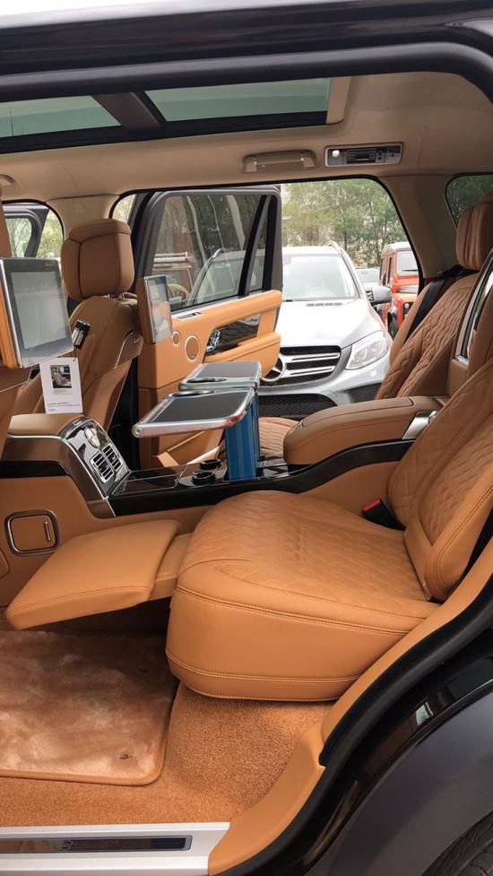 19款路虎揽胜巅峰SV限量版揽胜行政 5.0 T创世加长 四坐顶配 配置:22寸刀风轮,左右腿拖,左右伸缩桌板,菱形格子坐椅,SV创世包 (HUD抬头显示 ,ACC雷达测距 ,1700w顶级音响 ,黑钢琴桃木内饰 ,加热方向盘 ,24向前排按摩通风加热座椅,后排加热通风座椅,氛围灯,环影,盲点辅助,车道偏离警告)挡风玻璃加热,冰箱,空气净化器,交流电源插座 ,SV限量,加热风挡,备胎,大黑漆,吸烟包,装载空间存放导轨带行李箱,钓鱼凳子 原厂电动柚木地板。