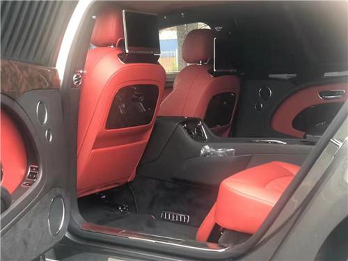 内部充分利用额外的后排空间,宾利研发了航空式电子腿托,组装在两个后排座椅的基座上。腿托可以向外延伸和旋转,为后排乘客提供直立、放松、倾斜等不同座椅位置的乘坐体验。在慕尚长轴距版的两个后排座椅之间,有一个控制台,还提供各种实用功能,例如USB接口、笔架、杯托和玻璃盖储存区。