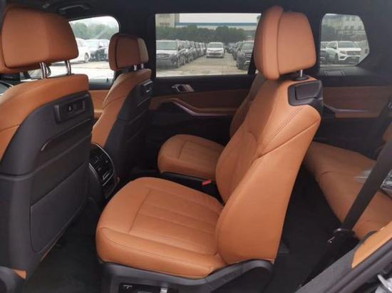 19款宝马X7整体内在风格和新款宝马X5有几分相似之处,中控台采用了向驾驶员一侧倾斜的设计方式,更方便驾驶者进行操控。中控台搭载了双屏设计组合,X7搭载了最新的iDrive7.0多媒体系统,并且拥有20G的硬盘空间可用。手势控制功能得到加强,目前支持一共7个手势,极大地提升了多媒体操控的便利性,并且还支持手机互联以及语音控制等实用性的配置。做工用料上采用了大量真皮以及金属木纹材料进行装饰,凸显出内在的奢华感。