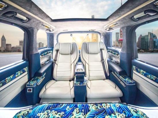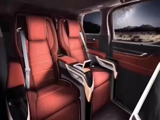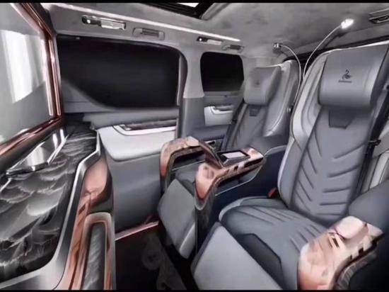 首先介绍一下内饰方面,蒙娜丽莎采用的是航空座椅,充分保证了主座的空间和舒适度,自由调整靠背,脚托的角度,享受着按摩、通风、加热等等这一系列的功能;听音乐,有JBL音响加持;观影娱乐,正前方就是4K高清电视,独立分开的影音功能,在前盘驾驶员在导航的同时,坐在后座的人还可以继续听歌看电视,互不影响,让乘坐者十分的惬意。整车采用了黑色作为主色调,座椅以及门边搭配了经典的编织纹皮,低调又不失奢华,这台车最与众不同的地方就是它的星空的车顶和天窗,特别的精致;侧窗部分最大的亮点就是采用了雾化玻璃和遮阳帘的设计,既保证了私密性,又可以随时观看车外的场景,所有的电控系统,都可以在航空座椅中间的触控屏上进行操作。