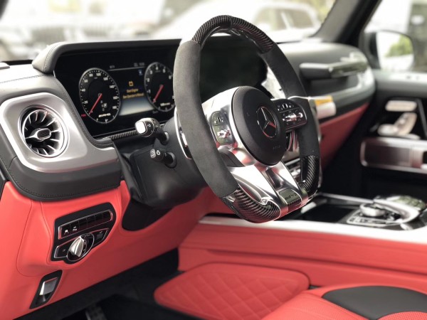 2019款全新G63内饰方面,新G63保留了新G500的整体设计,除配色差异外,新车还换装了全新造型的平底式AMG运动方向盘,其两侧配以打孔皮质包裹,下部镀铬装饰的造型也与新G 500明显不同,看上去十分战斗。此外,全液晶仪表盘+中控大屏的双12.3英寸屏幕设计在新车上也没有缺席,营造出了浓郁的科技感。新G63保留了新G500的整体设计,除配色差异外,新车还换装了全新造型的平底式AMG运动方向盘,其两侧配以打孔皮质包裹,下部镀铬装饰的造型也与新G 500明显不同,看上去十分战斗。