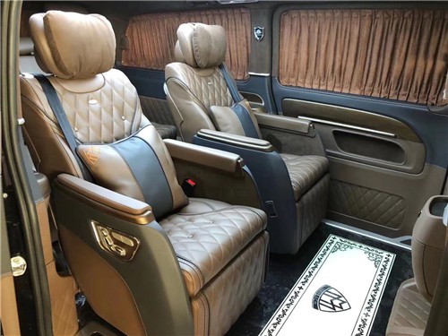 奔驰V260可加装桃木件,电视,吧台设计,航空座椅,九宫格的设计也很别致,加了氛围灯,又增加了几分浪漫的色彩,高端游艇木地板设计,既环保,又好打理,整体档次提升了很多无论是开会还是全家出游,做上去都很舒服。
