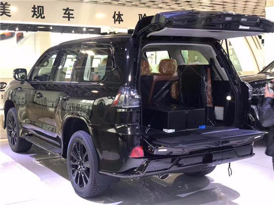 19款从外观来看,这款车采用了雷克萨斯家族式的纺锤造型设计,中网的横向镀铬条改成了寻黑色的造型。只在中网四周加入了镀铬条的装饰,此外就没有多余的线条做装饰,这种设计让它看上去异常的霸气,并且打开行车灯和雾灯之后,整体的气势又提升了一个档次。看上去更加像一台黑色多了套件的普通车型。下方的迎宾踏板也被涂成了黑色,而且多幅的黑色轮毂也十分帅气,而且车身的黑色车漆是属于金属漆,所以在灯光的照耀非常的炫目。雷克萨斯LX570超级运动黑耀限量使用了全新的Black Onyx车漆,搭配熏黑处理的前大灯和后尾灯组,使原本就霸气十足的外观更增侵略性。同时对车身上原有的部分镀铬饰条和轮圈进行了“黑化”处理。咨询电话:18522609103 墨菲 同微