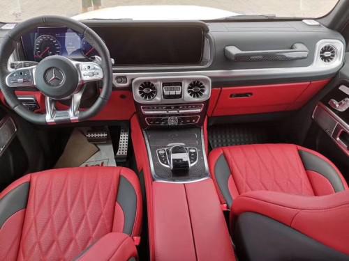2019款全新奔驰G63现车拥有宽敞充裕的车内空间和多种座椅布局方案,能够充分满足您对空间自由度的要求,中控台多处均采用碳纤维材料覆盖,带彩色TFT显示屏的AMG仪表盘、AMG主菜单和单独的挡位显示器以及采用白色照明的AMG门槛,名贵的选材及精湛的内装令人拍案叫绝。