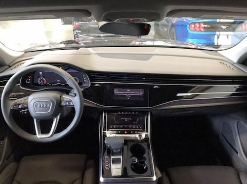 整个内饰的设计绝对是充满了科技感,首先方向盘采用了更具运动感的下方扁平的形式,全液晶的仪表盘也再次进行了升级,嵌入式的中控屏也是区别与奥迪Q7,所以很多新的设计在这部车中都有非常明显的体现!空调出风口依旧采用了贯穿式的设计,时尚感非常高!同时在中控台下端依旧采用了奥迪最新设计的可触控的功能性按键区,所以整部车的内部依旧是非常少的物理按键!