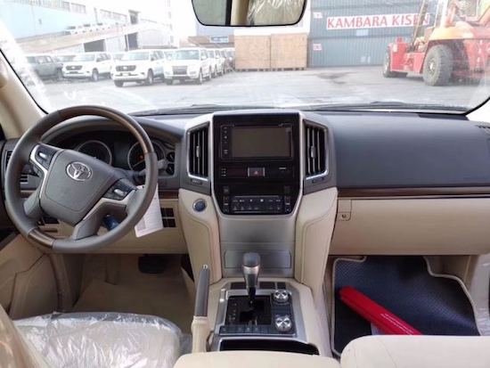 2019款丰田酷路泽5700整个操控区域色调为深色系,仪表盘、方向盘和排挡等位置均配以桃木装点,尽显豪华质感。不但具有DVD导航,这款车的倒车影像还可以 显示在内后视镜上;中央扶手箱还装备了冷藏箱,这些都与中规版车型有所不同。酷路泽5700车内看着更明亮、同时也更显豪华,更符合中国消费者对“豪华” 的定义。