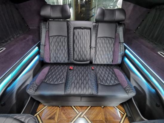 内饰方面,后舱整体的色彩搭配使用的是墨黑与焦糖的撞色。明艳又不失稳重。第二排座椅的扶手上贴心的配备了隐藏式杯托,并且在两个独立座椅中间加载了一个小型桌板,可放置水杯及烟灰缸等,满足旅途中的娱乐及办公需求。二排采用航空座椅,多功能8项电动调节包括配置通风加热,按摩等功能,座椅*的亮点在于座椅采用菱形花纹,除了视觉上的美观外,更是大大提升旅途过程中的乘坐舒适度,让您坐在爱车上享受飞机舱的驾乘体验。