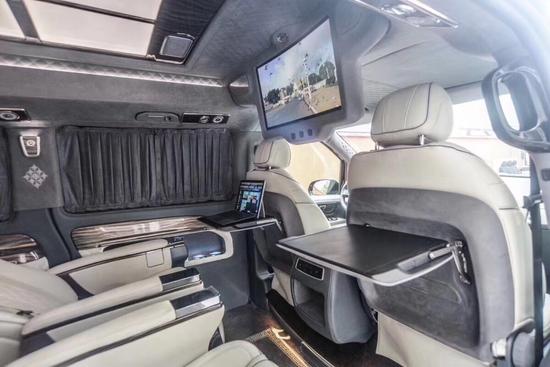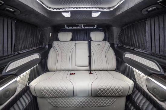 后舱立刻就会被它的豪华绚丽而征服,整车环保真皮包裹,游艇级柚木地板铺设,豪华感无处不在。全部采用真皮制作,豪华木饰装点,带有按摩加热通风功能。后舱前为两个独立航空座椅,第二排座椅安装进口首席航空座椅,加热通风按摩功能齐全,最大限度的减缓您的乘车疲惫。八向电动调节:电动头枕,电动腿托,前后电动调节,电动靠背调节。第三排为一组沙发座椅(可电动展平,形成一张舒适的沙发床)。