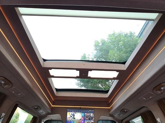 奔驰威霆第二排座椅旋转向后可与奔驰威霆第三排放倒后的座椅组成一个长度约为1.8m的‘床’,车顶带有天窗,旅途劳累躺在后面跟家人一起看看天也是一个很好的选择。车顶为玻璃钢材质,可选装金属车顶,车体框架为金属框架,在既保证安全的前提的同时,也减轻的重量,玻璃钢车顶也免去了夏日里太阳炙烤吸热,车里热成火炉的难受感觉。