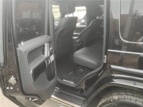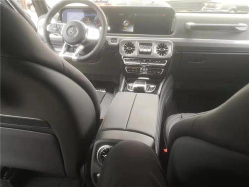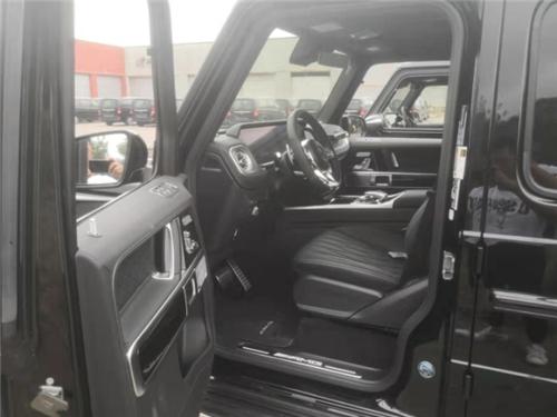 奔驰G63进气格栅配三叉星,四支大口径排气管从车身两侧后轮前部的侧裙处探出,再配以AMG传统风格的大尺寸合金轮毂。