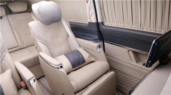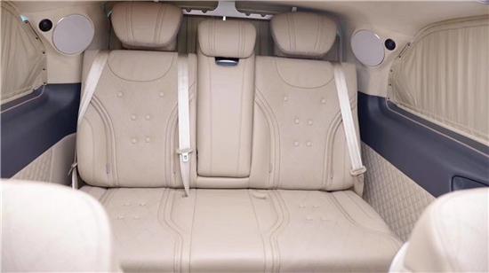 进口奔驰V250改装迈巴赫版VS980第二排座椅采用两个迈巴赫62S首长级座椅,带加热,按摩,通风,一键式电动调节记忆等功能。进口奔驰V250改装迈巴赫版VS980座椅符合人体工程学设计,同时带有电动椅背调节,电动头枕,电动前后调节,180°旋转,一键式伸缩腿托功能,带来头等舱级舒适体验,,私家客厅级后舱体验,180°旋转后可以与第三排电动沙发床进行无缝拼接,满足两个成年人一个小孩的正常休息,带来卧室级舒适享受。