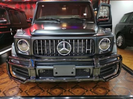 奔驰G作为奔驰旗下最强悍的SUV,一直以来都是大多数男人的梦,但是价格上的高昂也只能让大多数的人看看眼瘾了!图中这款车就是全新的19款奔驰“G63”。全新亮灰色的配色更是让这部车气场十足!正面上的进气格栅依旧是奔驰G家族式的风格,简单但不失霸气,两侧的炮眼大灯基本上秒杀统计人的任何车辆,而这组大灯则是由银色的日间行车灯所包围,霸气的前包围也彰显出了这部车的硬派感。