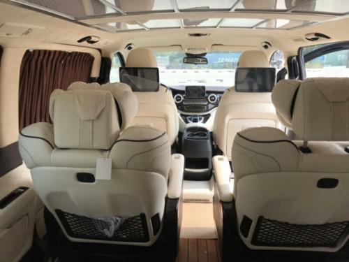 19款奔驰V (配置|询价)250 2.0T汽油 AVANTGARDE版 7速变速箱 七座 全车Lugano豪华真皮内饰 桃木内饰 柏林之声burmerter音响 LED智能大灯系统 多色氛围灯 备胎 电动真皮座椅带腰部支撑 电子手刹 主动停车辅助系统 360度环车影像 发动机启停功能 Dynamic动态操控选择系统(四种驾驶模式) 胎压监测 可折叠三排座椅 Nappa真皮多功能方向盘 换挡拨片 行李箱储物盒 镀铬套件 电动折叠后视镜 镀铬行李架 发光迎宾踏板 隔热玻璃 command导航系统 中控彩色大屏带DVD功能 电动折叠后视镜 前后雷达 倒车影像 隐私玻璃 定速巡航 两侧电动门 前座椅加热带记忆 蓝牙 电动尾门 尾翼 二排座椅可旋转 全景天窗 座椅舒适包。