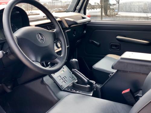在中控部分,G300各区域功能清晰,大多数功能采用按键与旋钮控制。值得肯定的是,G300配备了CD播放器,使远行更增添一番乐趣。在CD播放机的下部,改装奔驰G300预留了一块地方,方便日后加装其他设备。比较有意思的是,G300的空调采用了旋钮+三组拨杆的设计,还特别贴心的展示了前风挡解冻的功能。改装奔驰G300配备了手动防眩目内后视镜,尽可能多的保持机械风格才是所需要的。除此之外,G300还提供了前排座椅加热,增添更多舒适性