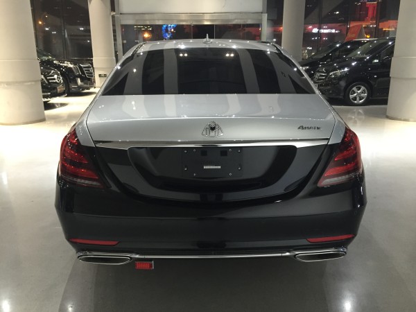 奔驰迈巴赫加长的LED尾灯由100多颗LED灯珠组成,晚上看是十分的漂亮。车尾的设计还是是保持着奔驰低调沉稳的风格,宽大的镀铬排气。而迈巴赫的双M车标,也提醒着后方的车辆保持间距,安全行驶。