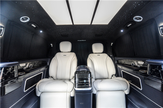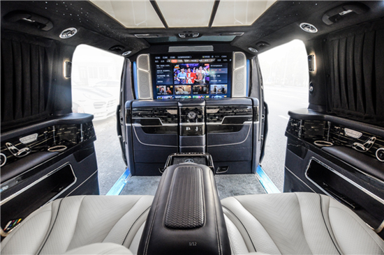改装六座迈巴赫版商务车,模具一体化,全车内饰件模具化生产,新型材料安全环保,给客户提供一个舒适安全的乘车环境。隐藏吧台,隐藏式吧台椅,一键式打开与关闭,科幻感十足,打开可乘坐,关闭为一精美的吧台,既美观又实用。