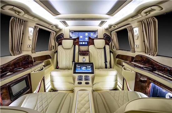 奔驰迈巴赫VS980商务车改装商务车钻系列配有苹果Ipad娱乐、办公系统搭载苹果Ipad平板电脑及原装蓝牙键盘,并隐藏于小桌板内,满足出行时的商务及休闲需求,奔驰迈巴赫VS980商务四座商务车智能交互控制系统第三排触控/按键双模式智能交互系统:触控屏+实体按键双重控制方式,轻松实现与影音系统、照明系统、座椅功能、隐藏式车内装备、后舱遮阳帘及车窗等设备的交互智能语音控制系统,奔驰V260L改装钻系列版通过语音控制车内各项功能,识别度高,听懂你的需求,全车IOS远程控制系统,搭载T-Acme手机客户端,奔驰迈巴赫VS980商务车可在手机端实现对车内功能的便捷操作。