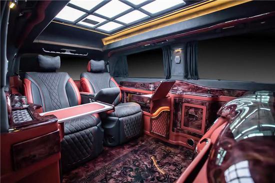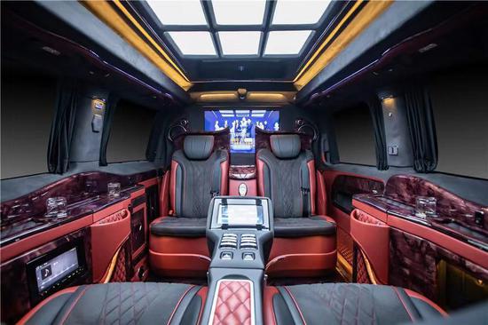 动力方面:奔驰V260L改装隐藏六座搭载M274系 (配置|询价)列2.0T涡轮增压汽油发动机,该发动机最大功率155千瓦,最大扭矩为350牛米,在传动系统上,与发动机匹配的则是7G-TRONICPLUS手自一体变速器,驱动形式方,全面部采用后轮驱动。全车尺寸:5370.1928.1920mm 轴距为3430mm完美保证了车内空间也造就了非同一边的外观。