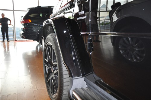 2019款梅赛德斯AMG G 63则换装了一款带闭缸技术的4.0T双涡轮增压V8发动机,并与全新9速手自一体式变速器相匹配,同时还搭载了AMG Performance 4MATIC四驱系统。其中发动机的最大功率和扭矩分别为585Ps和850Nm,百公里加速时间仅为4.5s,百公里综合油耗为13.2L,最高车速被限制在了220km/h,但如果炫装了AMG驾驶包后可提升至240km/h。