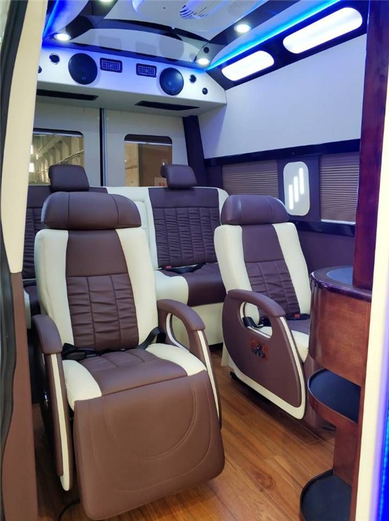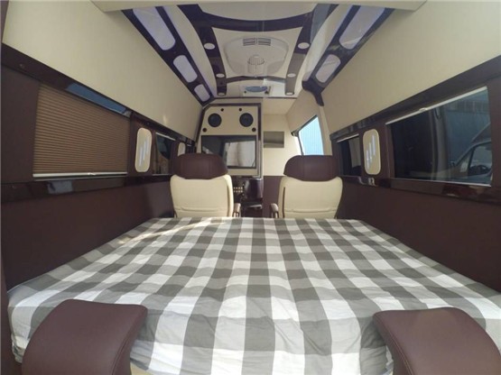 大通加长轴旅居房车后舱最后排座椅可电动四向调节,可以在后舱铺成一张双人沙发床,旅途劳累的时候,可以把后排座椅放平,舒舒服服的睡上一觉,这可是房车才能享有的特殊待遇。