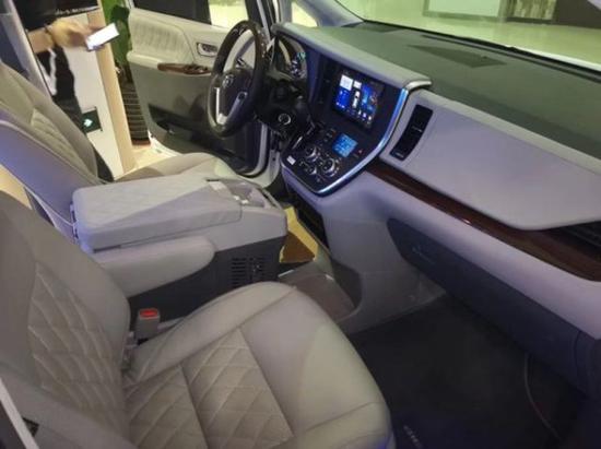 丰田塞纳商务车在配置上增加了DVD、倒车影像、导航、氙气大灯和不锈钢镀铬装饰。座椅可在轨道上前后推滑,为了扩大空间把原先中置的发动机向前移,加上下压的底盘,形成一个超大的内部空间,使驾乘人员的舒适性和载物最大化。