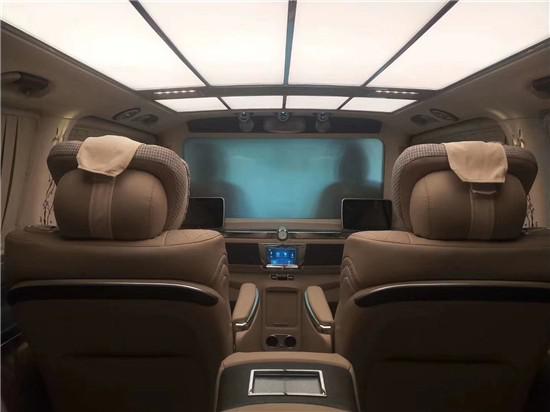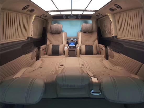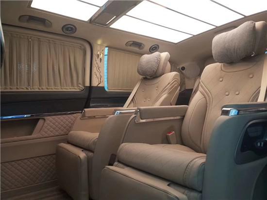如果说这种豪华的氛围只是感性上的认知,那用理性的决定选择这台VS980商务车就体现在它的个性化功能上。进入第三排我们深刻体验到这一点,第三排的座椅为贯通式设计,材质和舒适度与中排座椅一致,腿部和头部的空间可以用大的夸张来形容,创造出了绝等舒适的享受为商务车型,奔驰VS980的动力配置自然不俗,舒适的悬挂系统带来极为舒适的行驶感受,在电动窗帘闭合之后,车内的密闭空间与外界形成良好的隔绝,乘坐者无论是休息还是办公都有着极致的享受。