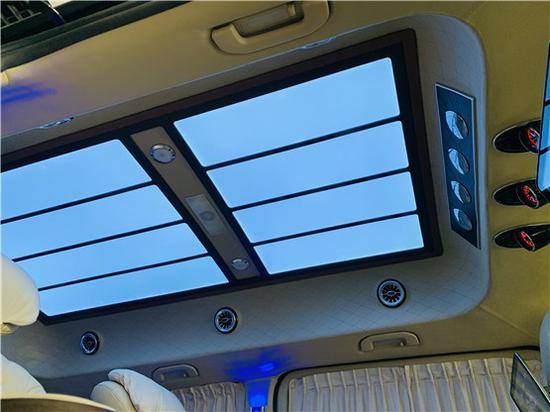 进口奔驰V级商务车迈巴赫VST680高顶无隔断 顶部分采用成本相当高的Alcantara包覆,并且保留了可开启的天窗和后部的迈巴赫九宫格顶灯,如果说这种豪华的氛围只是感性上的认知,那用理性的决定选择迈巴赫V级就体现在它的个性化功能上。