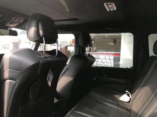 全新奔驰G5004X4配置:单天窗、22轮、红卡钳、双减震、氙灯LED日行灯、多轮廓电动包裹座椅、翻毛皮内饰(翻毛皮双色座椅、翻毛皮方向盘、翻毛皮门板、翻毛皮内顶)、前排座椅通风加热、二排座椅加热、哈曼音响(14个扬声器)、三把差速锁、中控碳纤维装饰、底盘舒适度调节、脚踏、前电眼、倒影、导航、多功能方向盘(蓝牙、定速巡航、换挡拨片)、双区空调。