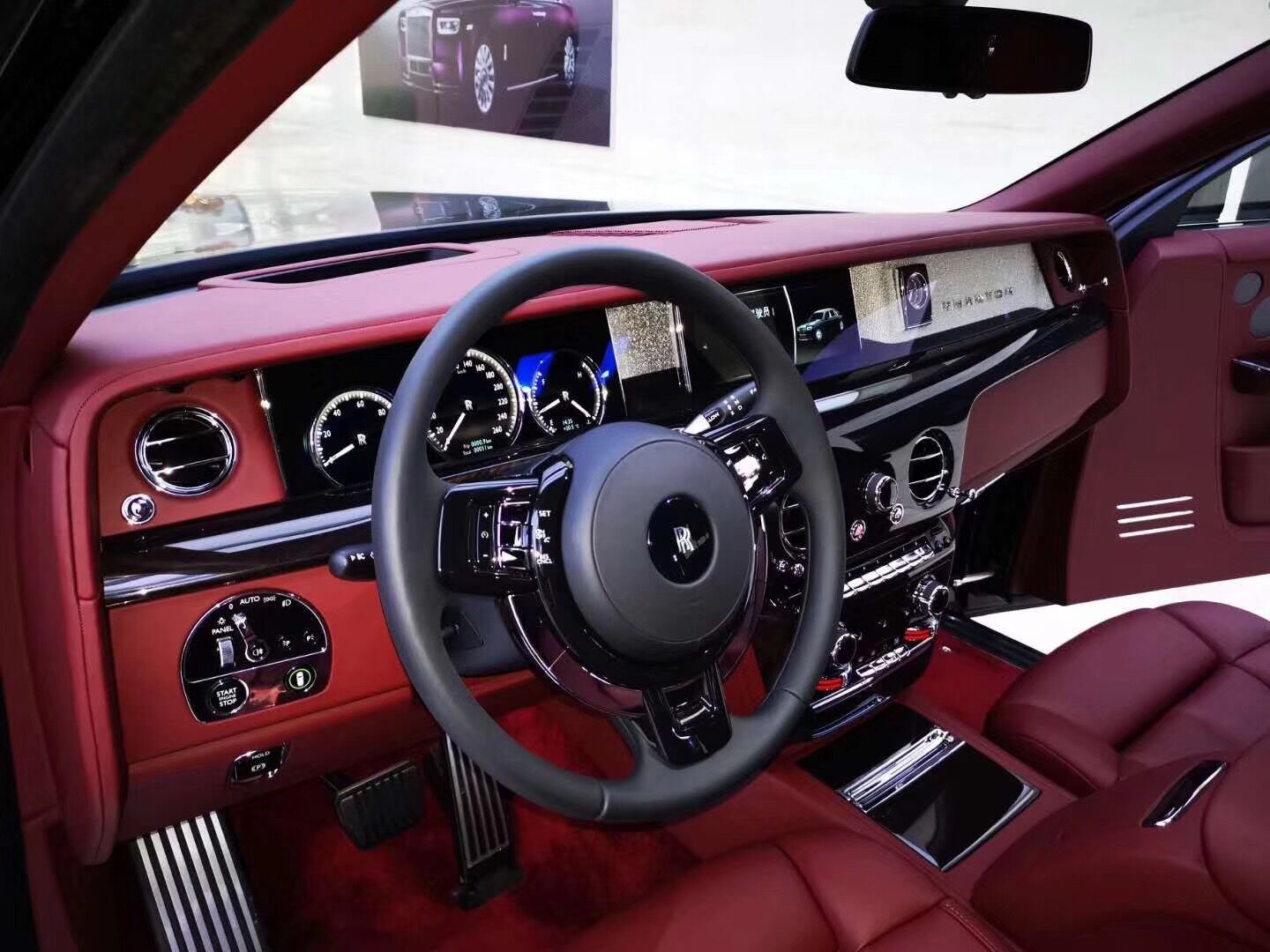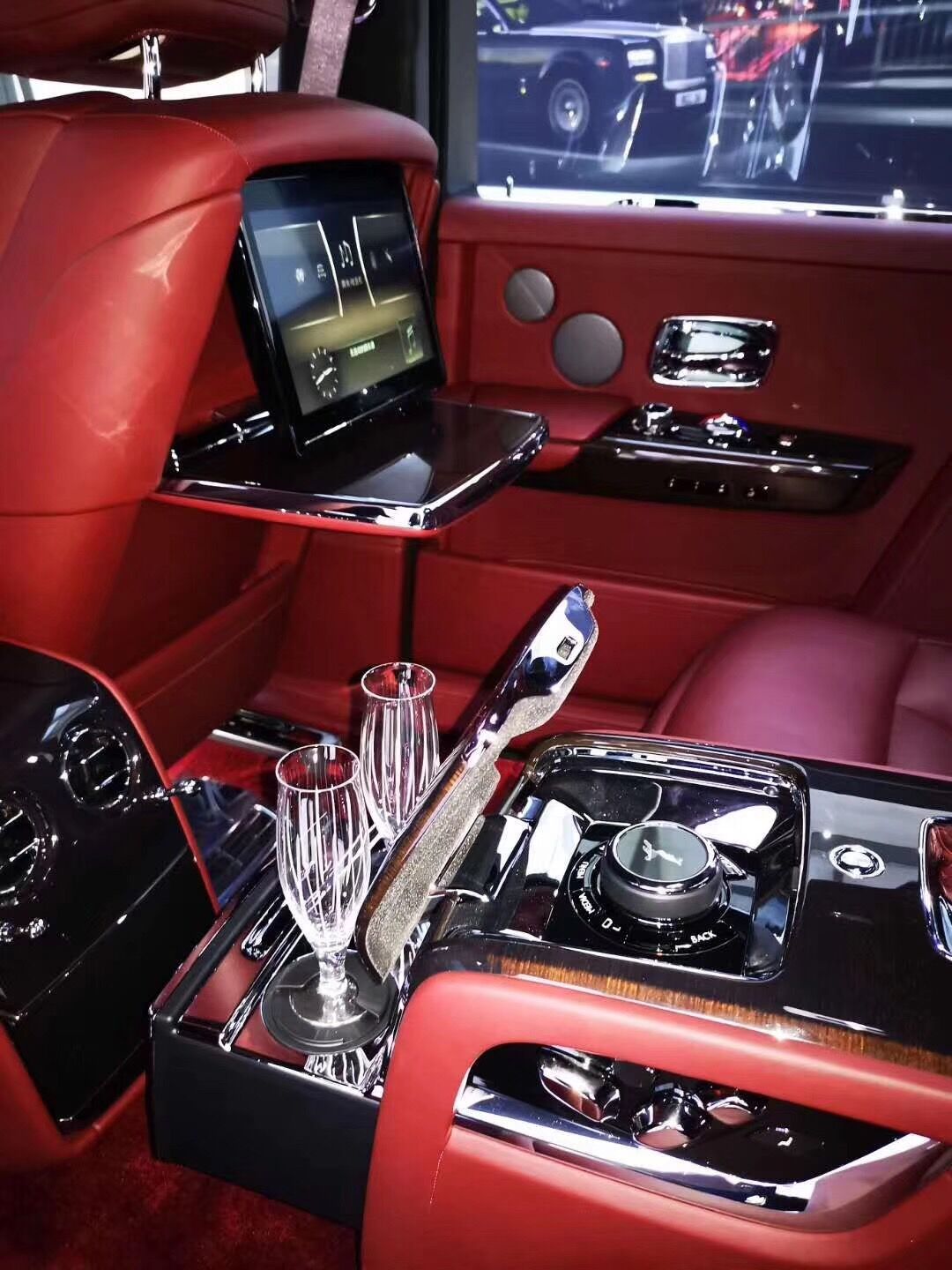 劳斯莱斯幻影后排才是重中之重,电动折叠板和后排影院系统被巧妙的隐藏在前排座椅的椅背后,只需轻触按钮,便可以自如收放桌板和影院系统,带来完美的剧院体验。