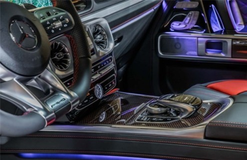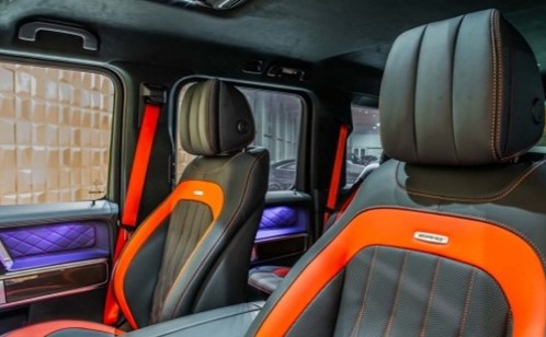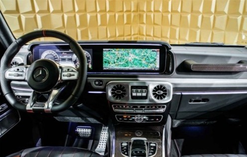 2019款奔驰G63经过全新改款内饰豪华气派,卓越的品质和精致的工艺在车内体现得淋漓尽致,对细节的精益求精是内饰设计中的重要原则。车内采用深色调与桃木装饰,黑色真皮运动座椅非常舒适,方向盘以高档真皮包裹装饰,触感极其细腻。配有桃木装饰的操控台,稳重大气,同时提高了整体的质感。