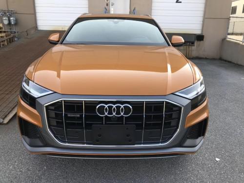奥迪Q8 (配置|询价)的整体造型比奥迪现有的SUV车型更加运动化。一如既往的是家族最新设计语言,前进气格栅采用了全新的八边形造型,整个格栅被哑光灰色宽边饰板包围起来,两侧四边形的LED大灯组与之相连。前保险杠造型也颇具立体感,两侧的进气口采用了蜂窝状造型,底部则是金属护板,展示出奥迪的野心和匠心。了解价格和其它车型可见文章底部联系方式