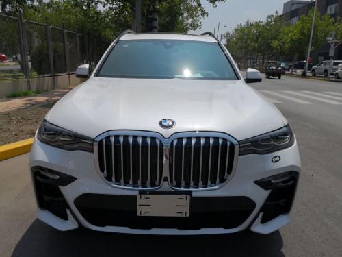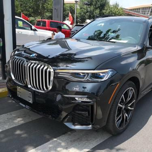 宝马X7 (配置|询价)前脸部分,X7采用了超大的双肾前中网,在量产宝马车型中应该是最大了,并且全部使用了镀铬装饰,豪华感十足。大灯也采用了“开眼角”设计,只是大灯尺寸略小,与中网形成一种反差,并且内部灯组采用了激光灯源,实用性和科技感毋庸置疑。了解价格和其它车型可见文章底部联系方式