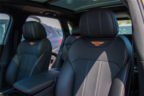 2019款宾利天悦(V8)综合驾驶舱基于座椅上绣有宾利徽章的对称设计,庄重而独特。木皮精挑细选,采用无缝一体工艺,精心雕琢各部位之美。坚固华丽的金属内饰在酷炫的风格中传递着别具匠心的温馨,从细节上凸显了SUV非凡的设计高度。坐直时,整个驾驶舱被全景天窗投射出的优美光线所笼罩。宽敞的空间感和舒适的空气将立即包围你。