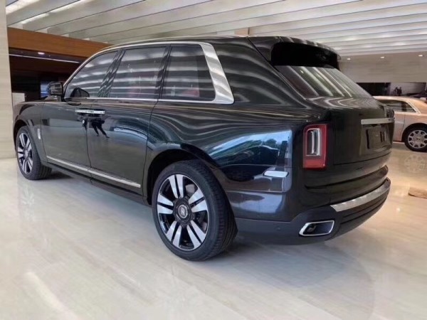 劳斯莱斯标志性马车式的对开门设计自然不会缺席,车门巨大的开启角度最大程度保证了上下车的便利性。顶部全景天窗的面积覆盖了一多半的车顶区域。车尾造型同样延续了劳斯莱斯方正的家族式特征,粗壮的D柱在车尾形成了陡峭的倾斜。平直的后风挡自车顶的扰流板向下延伸,在尾部形成了一个平台。整体造型依旧充满力量感。尾灯造型相比全新幻影更加方正,环状的LED灯带内部镶嵌着带有双R标志的装饰,更显精致。