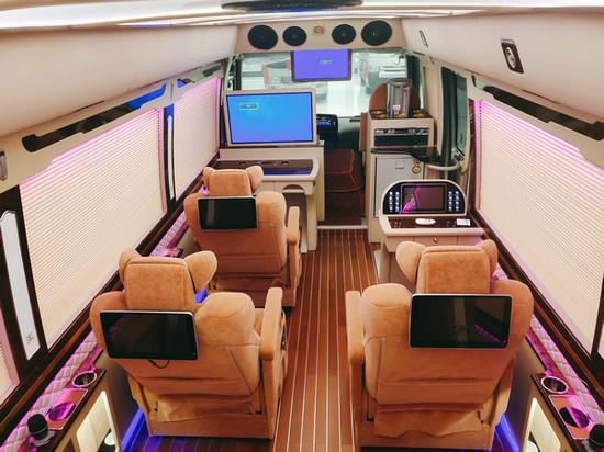 丰田考斯特改装商务车在车内的灯光上为我们模拟出彩虹的效果,丰田考斯特改装商务车内饰可以安装A380航空顶灯,车内之的颜色和氛围我们可以根据自己的需要进行设计。丰田考斯特改装商务车可以在安装LED大灯方便人们的照明的需要,同样也可以在座位上设计阅读灯,在人们阅读之时提供更加舒适的照明设置。