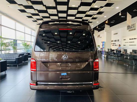 大众T6驾驶舱内饰风格为典型的大众家族式。但是高级的黑色钢琴漆和银色金属饰条让人感受到它不凡的豪华感。三辐式多功能方向盘、自动起停、自动空调、座椅通风加热等主流配置一应俱全,根据人体工程学设计的座椅装配的是两张进口航空座椅带多向调节、通风、加热及三组记忆功能,两侧都有隐藏商务桌板。