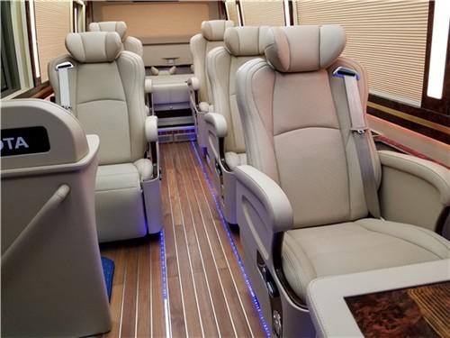 丰田考斯特12座改装豪华商务车采用的是豪华版的真皮座椅。而且座椅的装饰上可以有自动调节座椅位置靠背角度以及电动脚踏等设置。丰田考斯特12座改装是依据个人的需求完成的,所以我们可以根据自己的需求添加自动加热,通风的装置。满足我们在各种情况下的旅途需要。