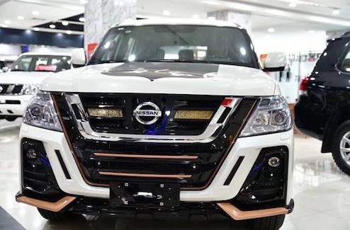 2019款尼桑途乐Y62家族最新设计语言下的首款车型,尼桑途乐Y62的整体造型看来极具轿跑风格,彰显出了极强的运动化元素。新车的前进气格栅采用了复杂的设计元素以及线条轮廓,相比之下,其前大灯组的造型则十分简洁,二者搭配使得前脸造型个性且耐看。则为该车增添了一丝的未来感