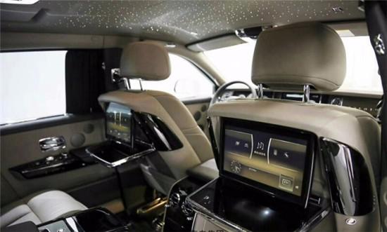 车内设计: 劳斯莱斯幻影车内采用的皮革隐隐地散发着牛的气味,在幻影车上,公众还能看到最高水准的手艺和最优质的材料。坐在左后的乘客欠身去取放在副驾驶的某种物品,这样左后车轮就会受力变小,减震器的传感器会迅速回馈给控制电脑,在不知不觉间达到力传递的完美过渡。后排乘客舱增加了 250 mm 腿部空间,从而不仅提供了宽敞的休闲空间,更增加了实现客户定制的可能性。这是一个能让您感到备受尊宠的私人空间,既是极佳的工作场所,亦适合在约会间隙放松身心。